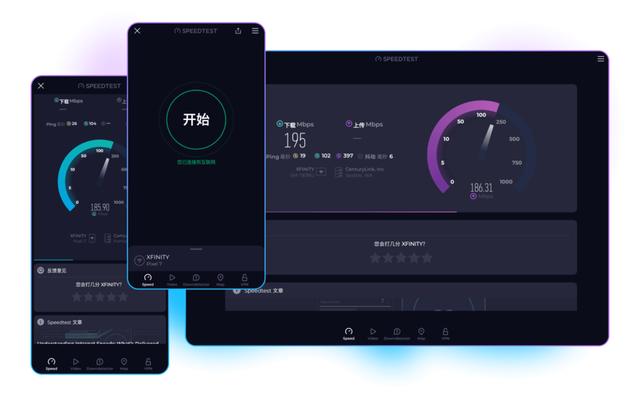 我们在 Speedtest by Ookla® 的使命,便是提供有关实际互联网速度的数据和见解,进而促进提升互联网速度。通过全球范围内数十亿次的测试,我们为您带来了适用于您最常用设备的应用。